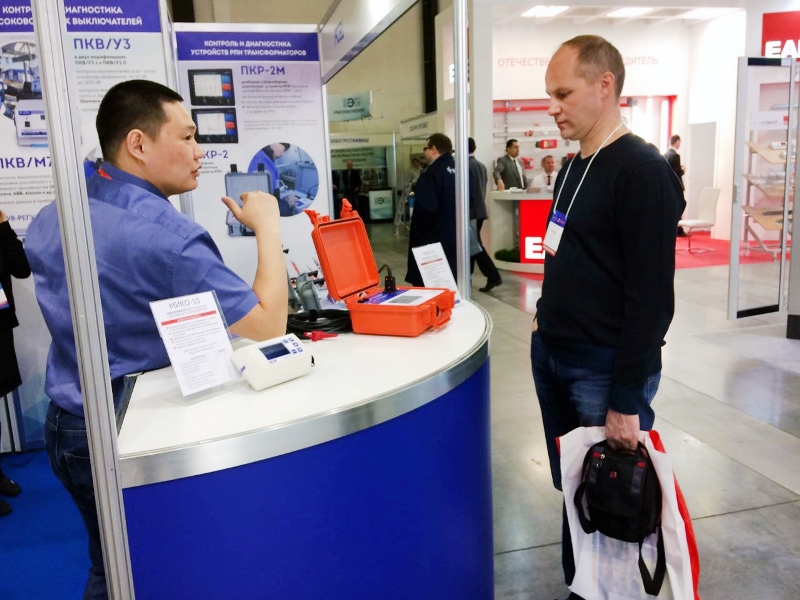 The stand presented the entire line of analyzers that had positively recommended themselves at the market of measurement instruments, namely, PKV family analyzers for HV circuit breaker testing; MIKO microohmmeters and milliohmmeters; and instruments of the PKR family for OLTC transformers testing.