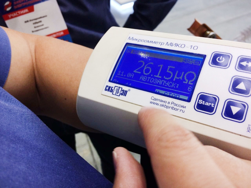 A neighbor of SKB EP Stand was OJSC KEMONT Company (a plant in Kazakh republic for electric equipment assembly) that was demonstrating knife switches BHA-KEM/kz-П-10-630-20-У2 of vertical-rotating type. It was interesting to measure transient resistances of those switches and to demonstrate our analyzers in operation. MIKO-1 and MIKO-10 microohmmeters were used for performing the tests.