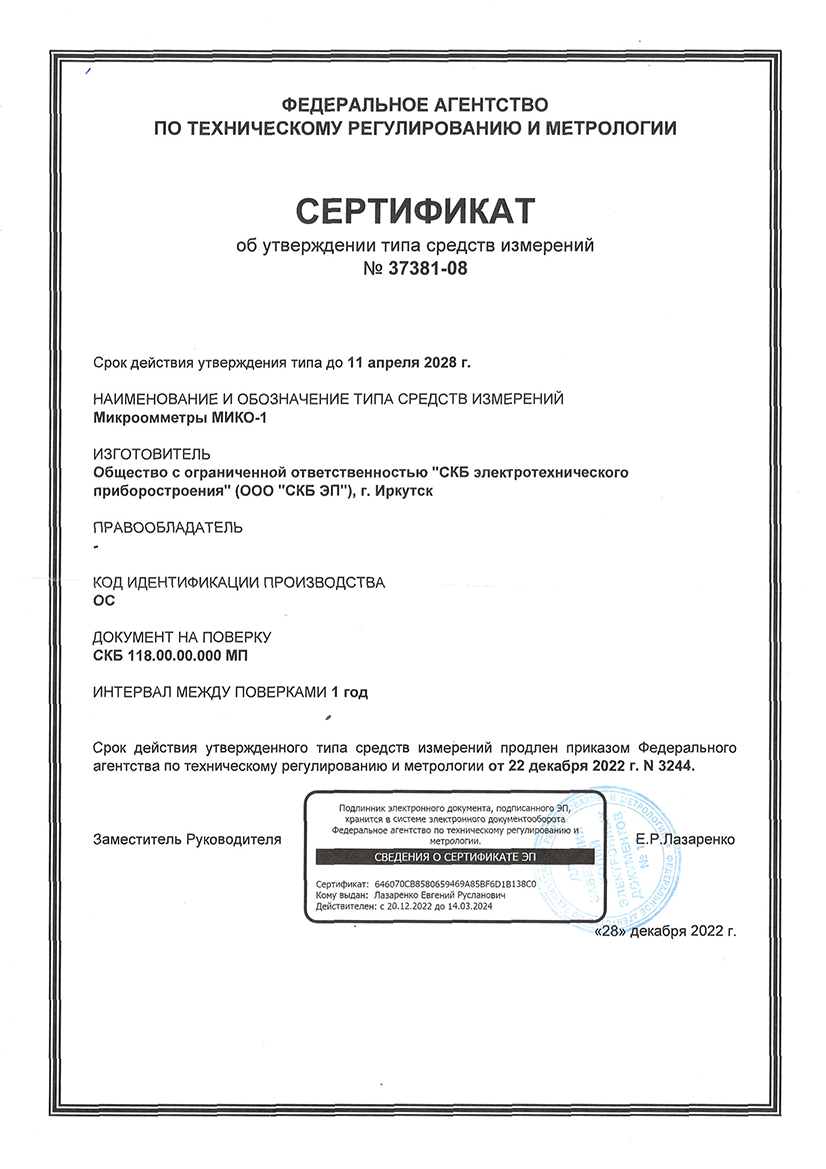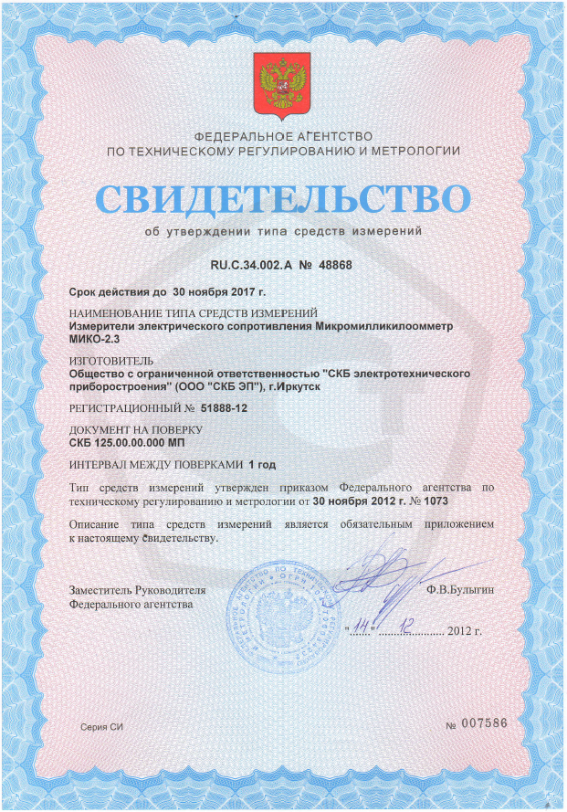 MIKO-1 is included in Russian State Register under #37381-08, valid until 11.04.2028