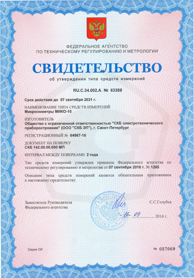 MIKO-10 is included in Russian State Register under #64967-16, valid until 07.09.2021