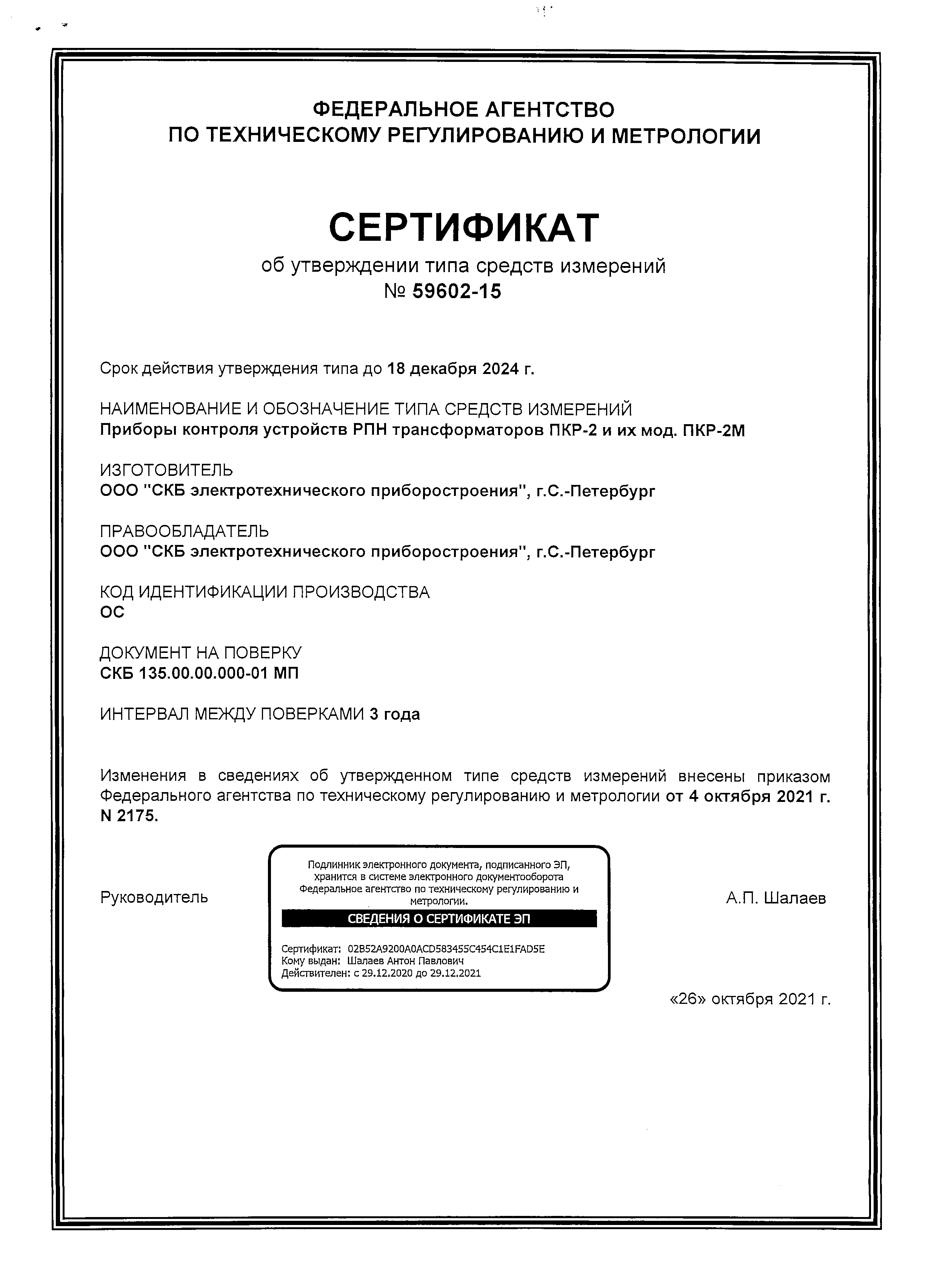 PKR-2 and PKR-2M is included in Russian State Register under #59602-15, valid until 18.12.2024