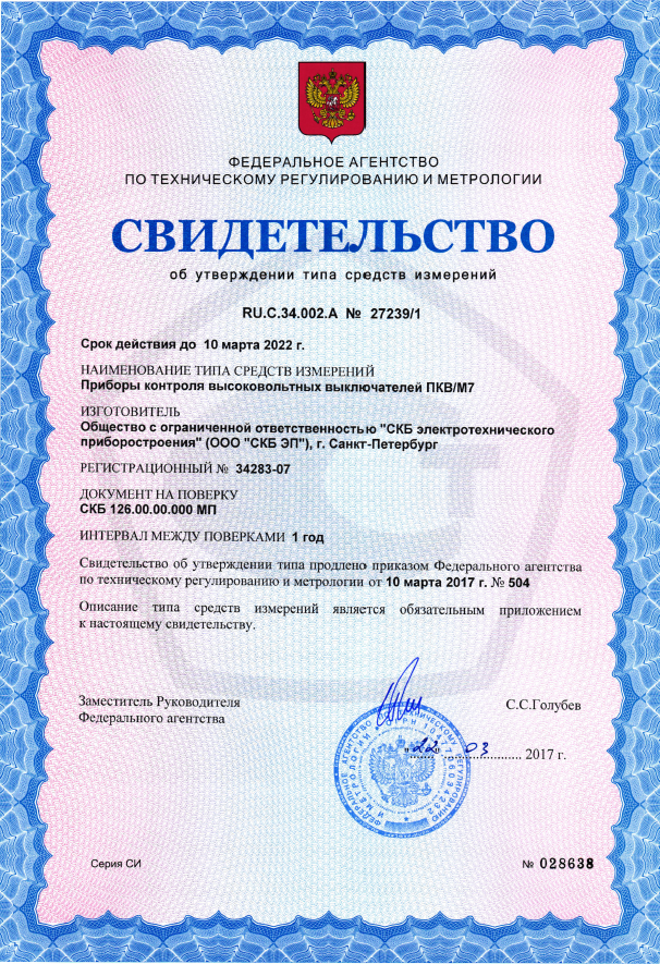 PKV/M7 is included in Russian State Register under #34283-07, valid until 10.03.2022.
