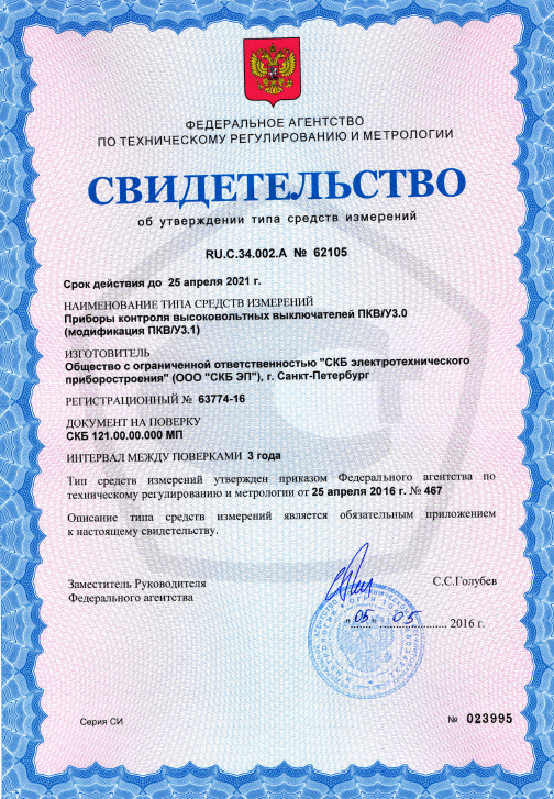 PKV/U3.0 and PKV/U3.1 is included in Russian State Register under #63774-16, valid until 25.04.2021