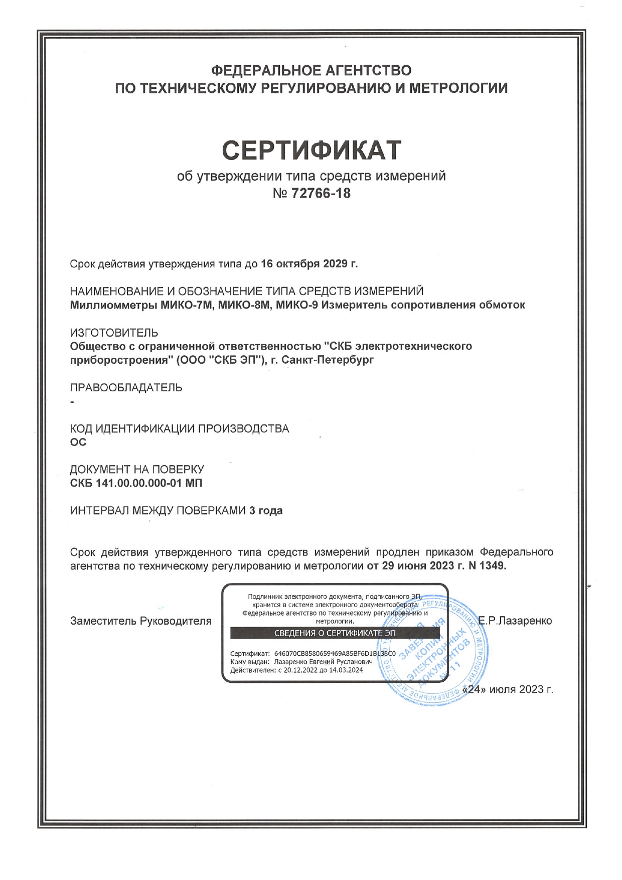 МIКО-7М - EAC № RU Д-RU.PA03.B.34601/22; valid until 28.04.2027