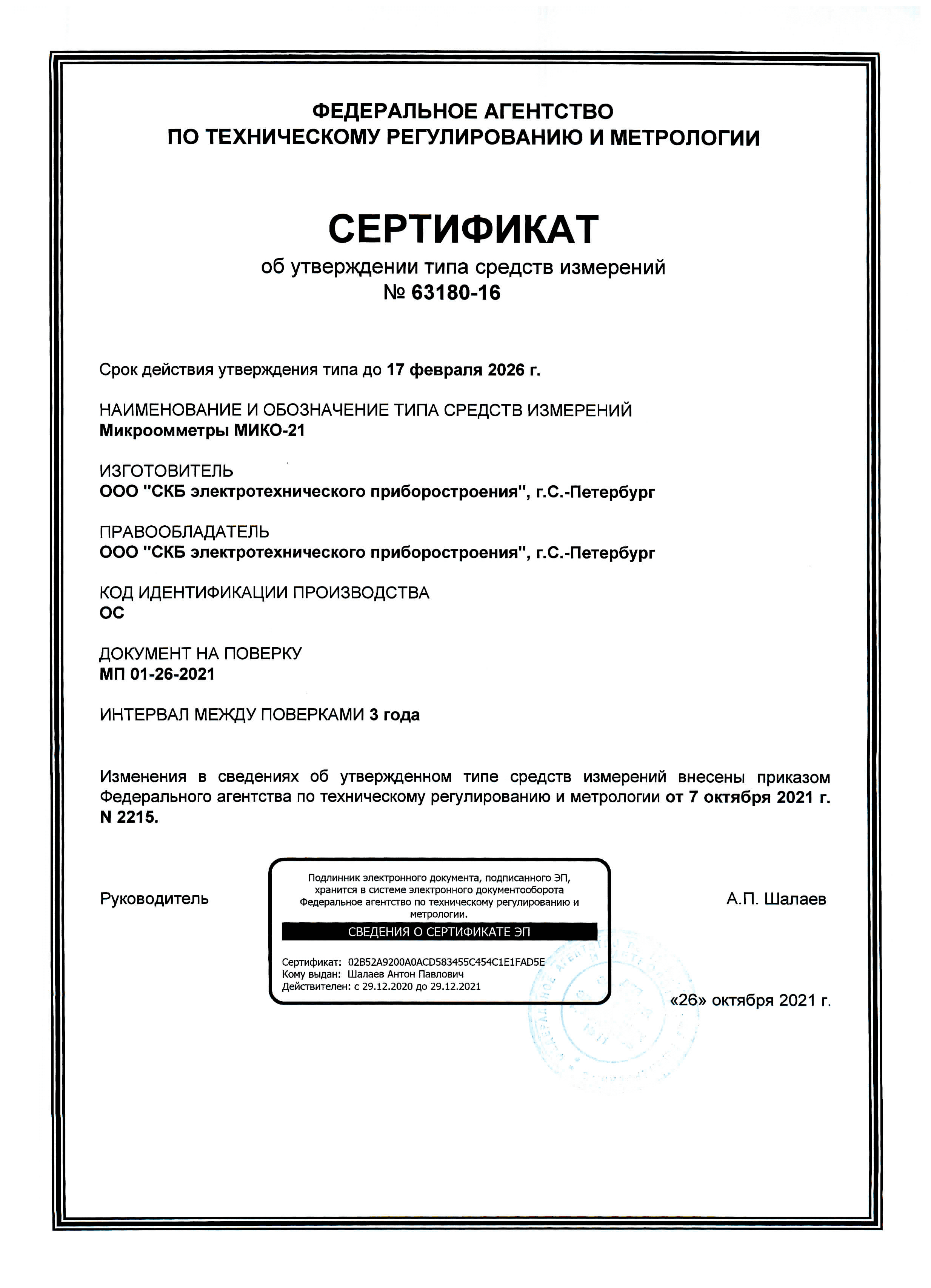 MIKO-21 is included in Russian State Register under #63180-16, valid until 17.02.2026