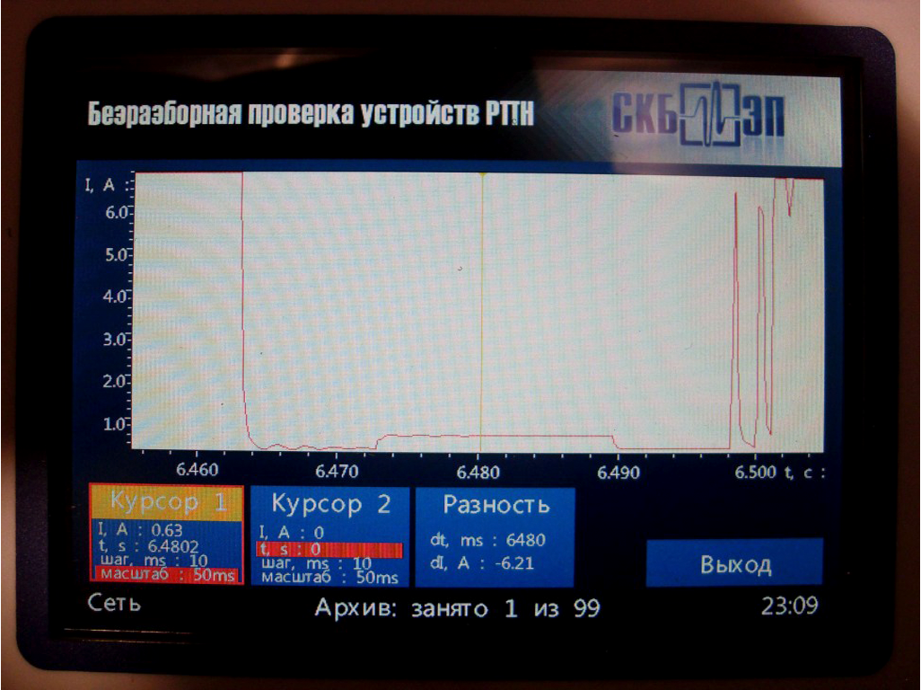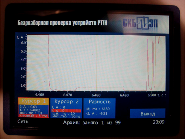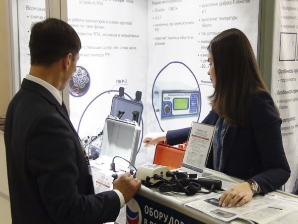 The ABB Company exhibited a vacuum resistive LTC device of VUCG type, its latest development. The HV equipment manufacturer was interested in the instruments for diagnosis of their product, and the SKB EP specialist demonstrated operation of the MIKO-8 milliohmmeter and of specific-purpose PKR-2M instrument with a non-destructive control mode. Oscillography of one phase of LTC contactor was demostrated.