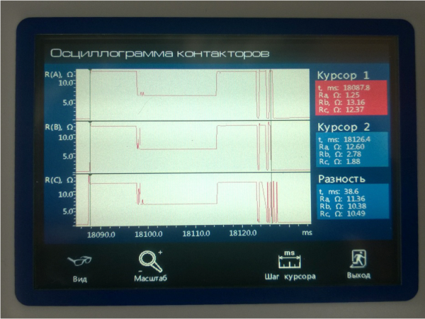 Oscillography of LTC vacuum device contactor of ABB brand using the MIKO-8