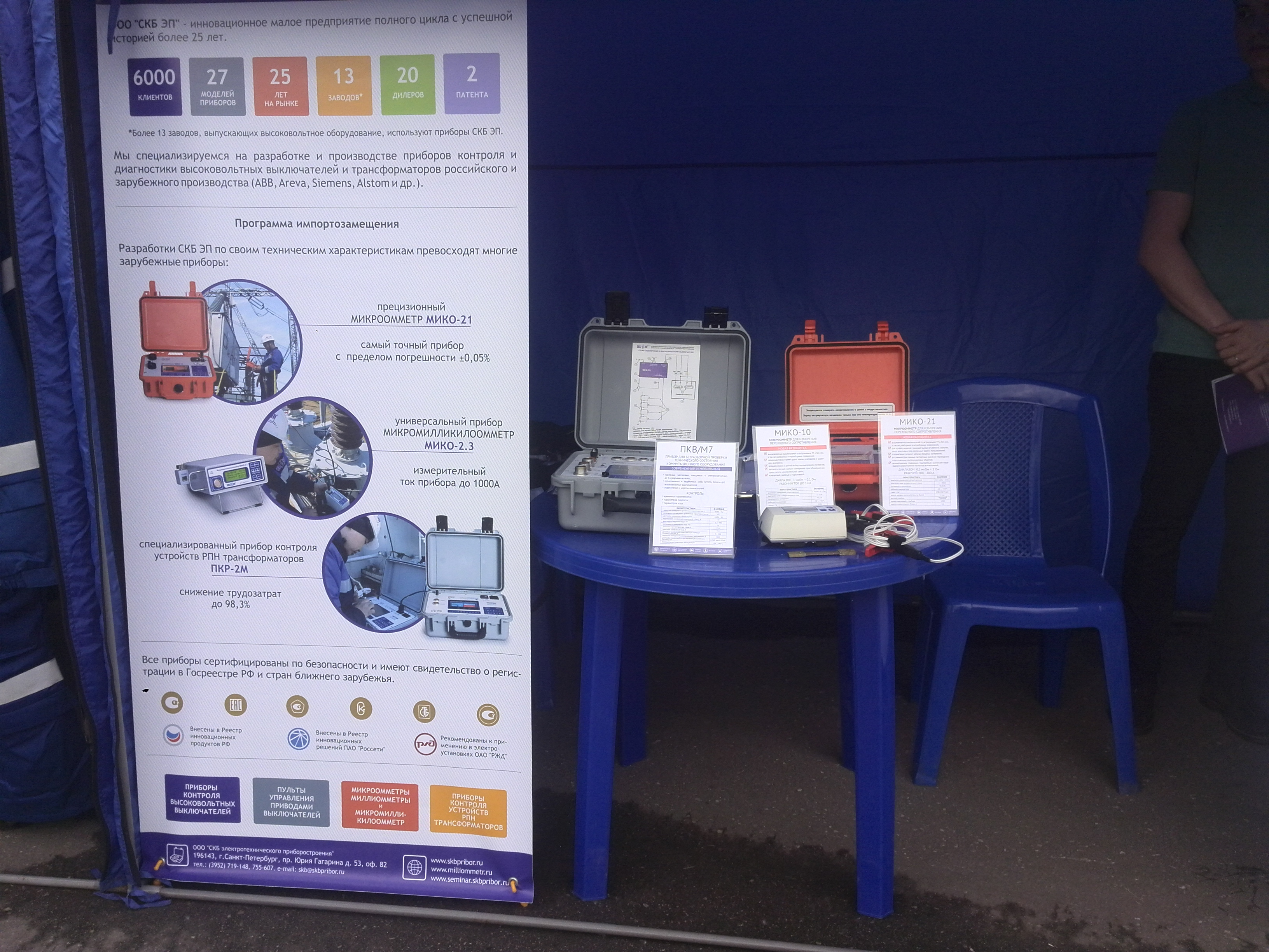 SKB EP people took part in the contest within the framework of the Fair that was organized in parallel with the contest. The SKB EP Company exhibited its new developments, namely, the MIKO-10 portable microohmmeter, high-precision MIKO-21 microohmmeter, and a well-proven PKV/M7 analyzer for HV circuit breaker testing.