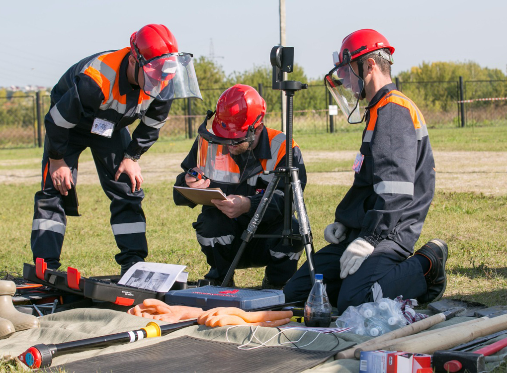 The teams were to go through eight different tests including check of theoretical knowledge and practical skills: replacement of the main switch at complex transformer substations, fire extinguishing, measurement of TL size, rescue and first aid to the suffered from electric shock.