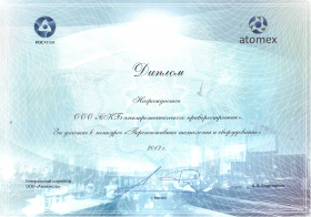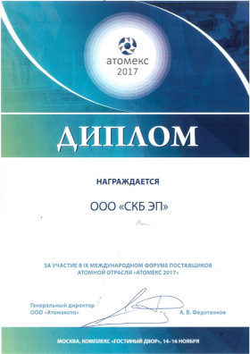 On November 14-16 the ATOMEKS-2017 Forum of manufacturers of equipment for nuclear industry was held in Moscow. It was organized by Rosatom State Corporation under support of RF Chamber of Commerce, "MSP and Hopes of Russia" Corporation.