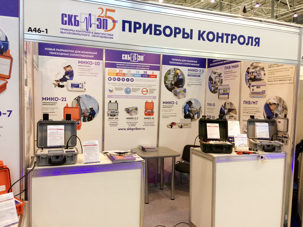 This year the stand included some devices that have already recommended themselves at the market of equipment for measurements. Along with its well-known devices the SKB EP Company presented new developments, namely, MIKO-9 milliohmmeter and a prototype of PKV/M17 devices for high-circuit breaker testing.