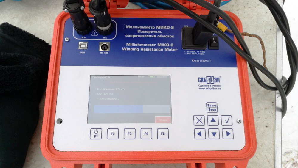 Development of new version of the MIKO-9 milliohmmeter is currently at a stage that needs different tests and trials. The instrument was subjected to a full set of tests at ТМН-10000/35-72У1 transformer including in the DRM mode for OLTC devices and in the demagnetization mode at current temperature of -22ºС.