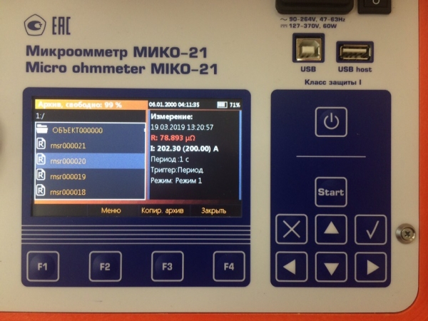 Microohmmeter MIKO-21 was compared to one of the foreign analogues. This comparison revealed significant advantage in accuracy, as well as the advantage in speed of the measurement process by 3 times on the high-voltage VMG-10 circuit breaker. MIKO-21 is the most accurate microohmmeter of this class, as the accuracy equals 0.05%. The microohmmeter enables contact resistance measurement of circuit breaker main contacts, DC winding resistance measurement of, and much more. In addition, MIKO-21 is smaller in weight and size parameters than its analogues, and has ability to work both from the network and from the built-in battery.
