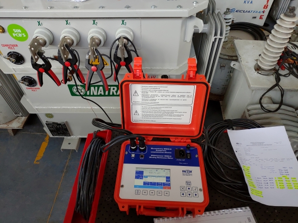 Ecuador specialists mentioned the small size of the instruments. They tols us that it seems to be quite easy to take the milliohmmeter around the facility. Furthermore, users were impressed by the MIKO-9A ability of simultaneous connection to three phases of the transformer. The instrument independently performs phase switching, without the need of manual control. This feature allows to reduce the total time of measurements by 3 times.
