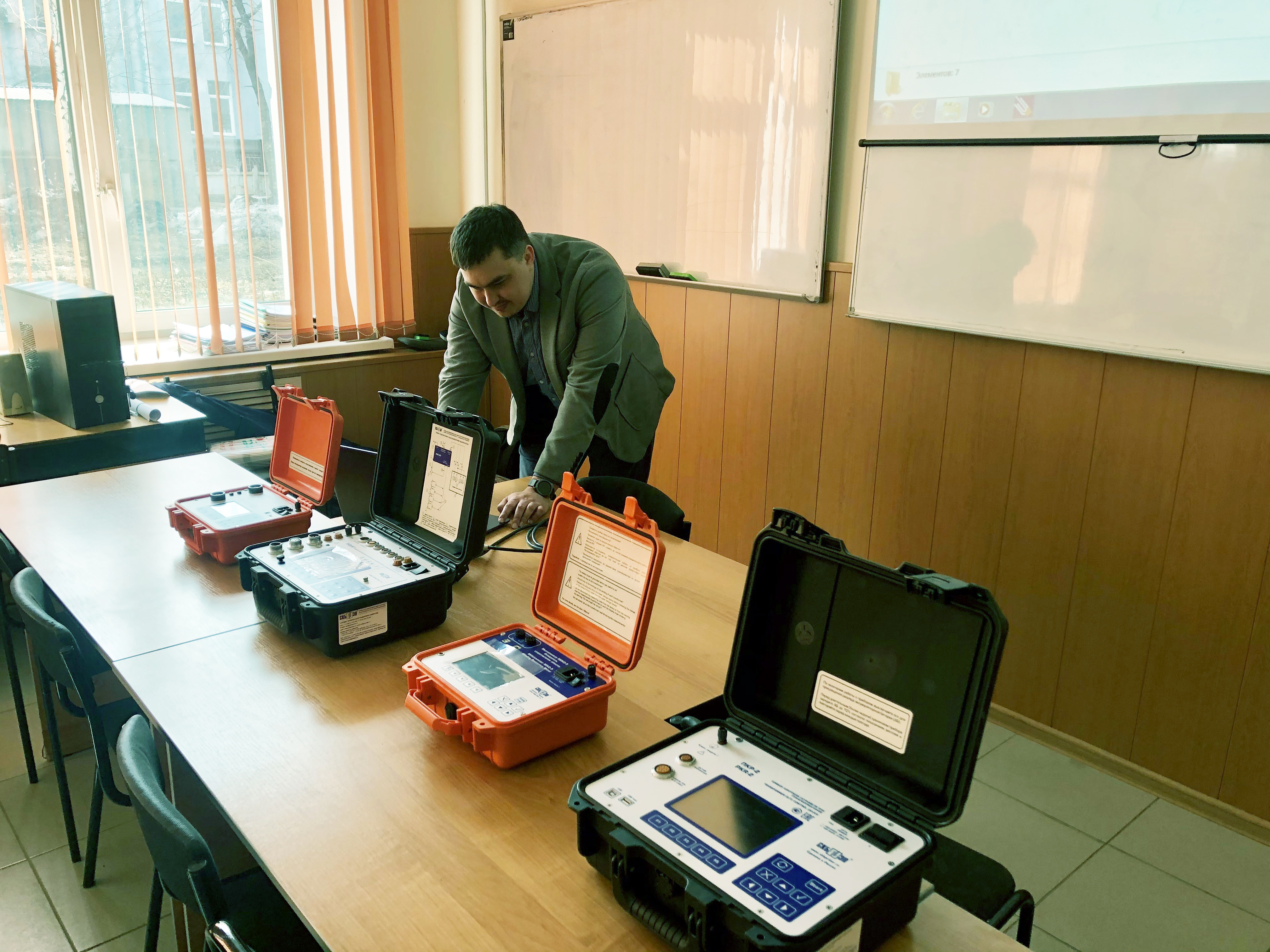 SKB EP constantly works on the development of high-voltage equipment diagnostic, and is engaged not only in device manufacture and holding trainings for customers, but also works with educational institutions. Recently, was held a training for the Department of Electric Power Stations, Networks and Systems of the Irkutsk National Research Technical University (INRTU). Previously, SKB EP specialists prepared laboratory trainings for the students, and this time they performed training for the university professors. The training was dedicated to working with high-voltage equipment diagnostic devices. The most important is that professors will provide this information to students in practical classes.