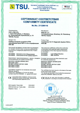 After carrying out the relevant technical tests, the European CE certificate was obtained for PKR-2 and PKR-2M OLTC analyzers manufactured by SKB EP. The registration number is 211299116. This certificate confirms that PKR-2 and PKR-2M instruments meet the requirements of the EU directives and comply high European standards.