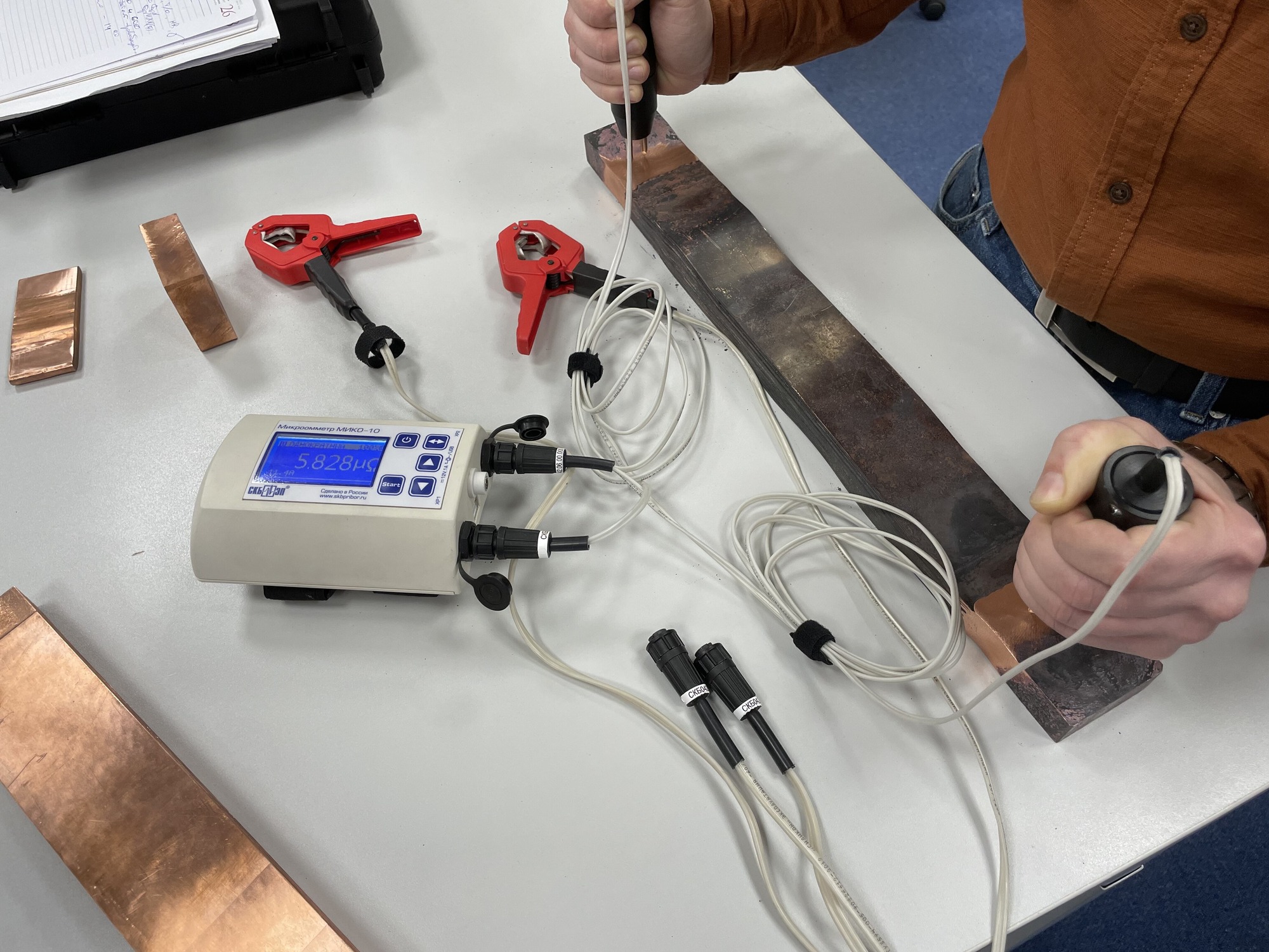 "ASTRINSPLAV SK", LLC specialists requested a compact micro-ohmmeter MIKO-10 demonstration. They had to measure the resistance on a copper busbar samples that are manufactured by them. Since their client that ordered this product will carry out control measurement with the use of MIKO-10, they contacted SKB EP directly as the manufacturer.
