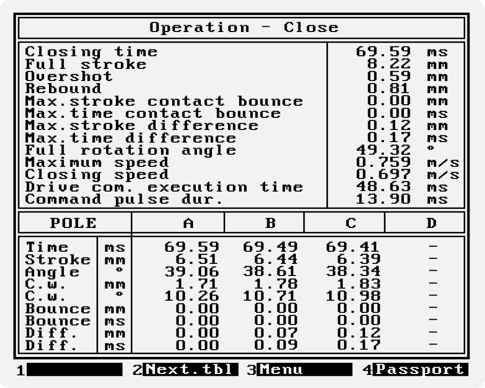 诊断结果显示在一个表格中,其中包含每个循环操作的测量和计算参数(当处理复杂循环的测量结果时,设备会自动将循环分解为简单的操作)。这些表提供的数据包括: