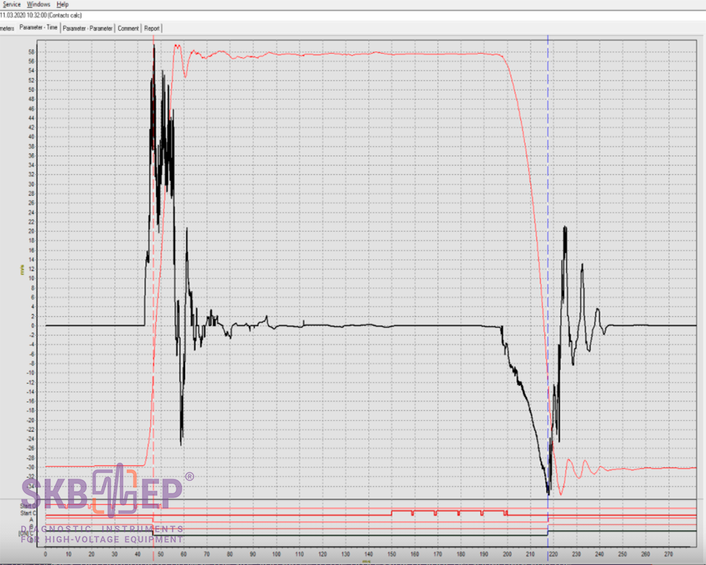 除了带有测量参数的表格外,还可以从使用光标和缩放导航的记录图形中获取有关断路器状态的更多详细信息