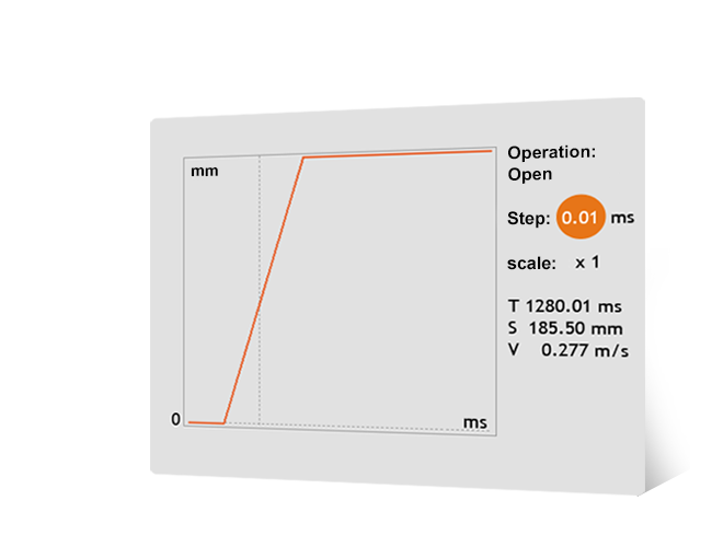 对于测量速度和行程参数,可以确保高精度时间参数测量(±0.1 ms),行程和速度特性使用分辨率为0.09°和0.5 mm的增量(离散)角度和线性运动传感器测量。