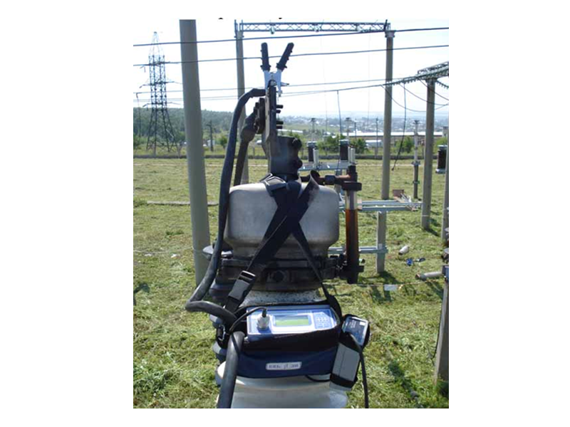 Thanks to light weight of the MIKO-2.3 the measurements can be performed with the instrument placed on the circuit breaker cover or on the servicing platform of a lifter. You can use short cables, which is of importance, taking into account their large cross-section and heavy weight. Despite the fact that the instrument is furnished with a cable of the K162 microohmmeter for operation on the 6÷110kV circuit breakers, you can select a shorter and lighter (K161) or a longer (K163…K165) cable depending on the voltages of circuit breakers available.