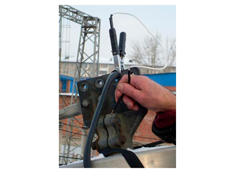 1.6. During operation from a lifter platform a long section of the cable is connected first, then a lifter is installed against the second input and a short section of a cable is connected to it. So that not to drop the second part of a cable during lifter motion, tie up a rope to the short section of a cable and fasten its second end to the lifter platform. This rope is used for raising the second section of a cable.