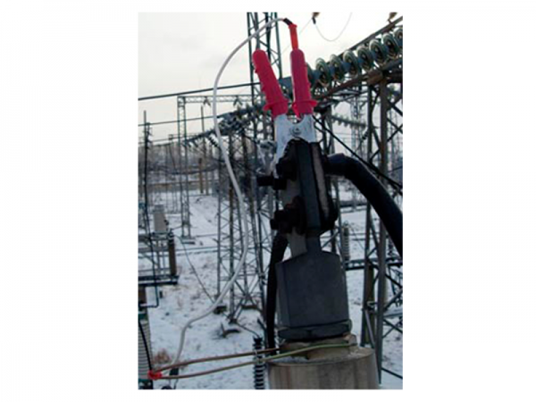 When a pin-type contact is used on the 110kV (and above) circuit breakers, two persons are needed due to a long distance between inputs. On the 35kV circuit breakers (and less) both contacts can be held by one person if he uses a startup delay mode.