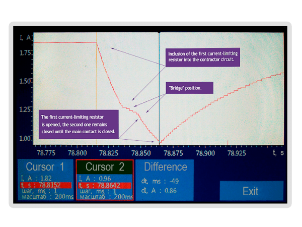 This mode facilitates obtaining the information on condition of LTC with current-limiting resistors. Only if the fault is detected, you will have to open the contactor tank or withdraw a unit from the transformer tank for detailed examination using special-purpose PKR-1 or PKR-2 devices and for subsequent repair. Non-destructive testing can be performed both prior to measurements in the milliohmmeter mode, and after it.