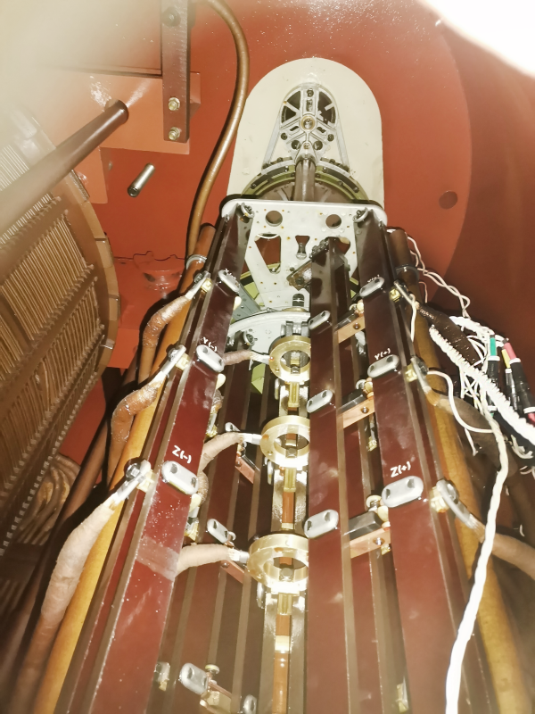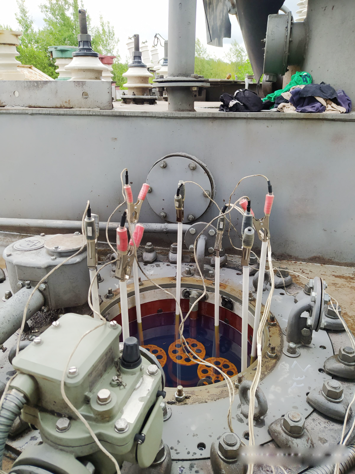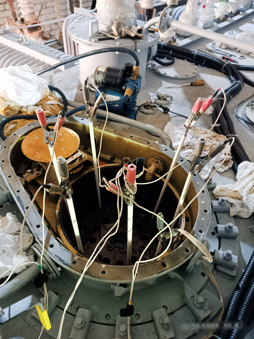 Such diagnostic method is more labor-intensive and long, starting with the preparation for the diagnostic and the process itself and finishing with the return assembly of an OLTC for the workflow. It is necessary to open a tank cover of an OLTC and connect inside the tank of the power transformer, consequently, it is needed to partially or completely drain the oil to connect the instrument of PKR group to the fixed contacts of the contactor. (Fig. 4).