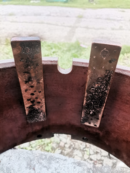After the received oscillograms and identified defects in the graphs - the contactor was removed from the tank and transformer. The preliminary assessment according to the graphs was confirmed (Fig. 11).